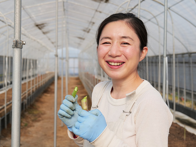野菜がいま安いので、日々どんどん変えていく、現状維持ではなく。ほぼ社長が決めて、私もスタッフの一員として、ともに支えていくという形です。どんどん新しいことに挑戦して、試してダメならやめる、回転良く。夫も私も、もともと美しいもの、おいしいものが好きなので、作物も着ているものも圃場も全て何もかも、「美しく」を心がけています。そういった面で、自分たちの中では、美術をしていた時と農業で、やっていることにあまり差はないと思います。そこに加わったのは、地域との交わりや人間関係です。