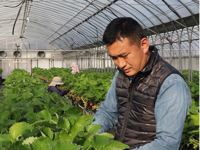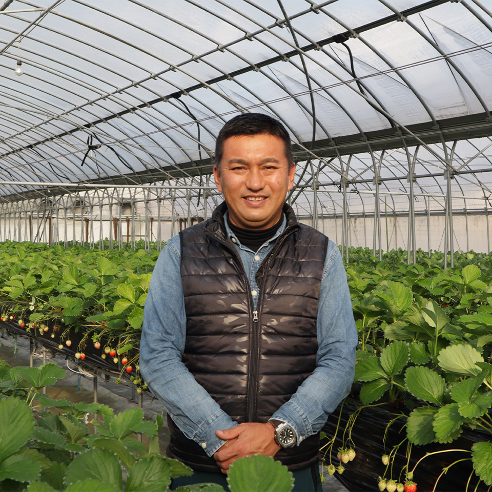 経営面積 | イチゴ65a、ミニトマト10a、ナス30a、青ネギ1ha |