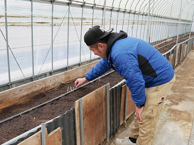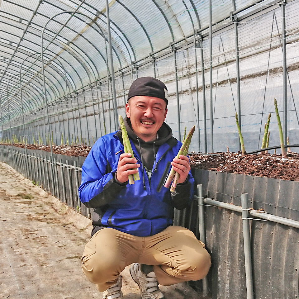 祖父の代からの農地を継ぎ2012年に就農し、アスパラハウス2棟から始めました。今ではアスパラガス、ジャガイモ、赤カブ、ブロッコリーと栽培作物を増やして、通年なにかしらの作物が収穫できるように工夫しています。