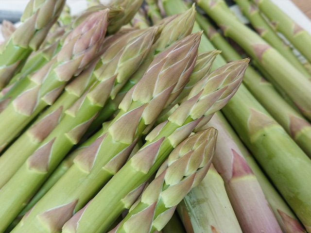 近隣の人たちに迷惑をかけず野菜作りに取り組みたいという思いから、露地野菜の栽培では、牛ふんを利用する方法から、麦わらを利用した土づくりに切り替えていくことに取り組んでいます。現在年間10トン出荷しているアスパラガス「さぬきのめざめ」に関しては、香川にしかないという希少価値と大きさや味で人気が高いという利点がありますが、他の品種に比べ病気に弱いという弱点もあるため、病気の兆候の発見が遅れないよう注意しています。全国に流通しているアスパラガスは、ほとんどが海外品種。「さぬきのめざめ」の美味しさを徐々に全国へ広げたいと思っています。