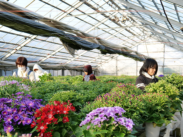 父の子どもたちへの興味付けがとても上手だったのだと思います。言葉は悪いですが、無意識の洗脳のような感じで、小学校の時にすでに自分はいずれ父親のように農業をするようになるものだと思っていました。農業関係の高校、短大と進んだものの、あまりにも当たり前のように就農することが少し怖いような気がして、いったんは上京して就職しました。しかしいずれ戻るつもりでしたので、何かの勉強になればと農業資材メーカーで6年半営業を経験しました。就農の際には父とは別経営で500坪からスタート。その3、4年後くらいに大阪で花屋勤めをしていた弟も戻ってきましたので、不平等が起こらないように全員役員とし、法人化しました。
