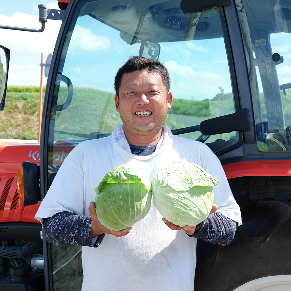 また、夏場の対策として、県外(岡山県真庭市蒜山)でキャベツを栽培しています。こちらは100%、現地のスーパー様との契約栽培です。