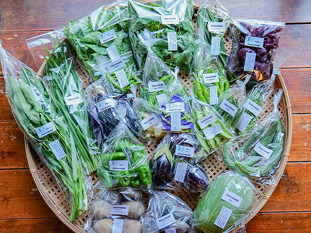 私たちは2018年に独立就農しました。就農当初は、飲食業やセラピストとしての経験を活かし、自ら育てた野菜でオーベルジュ(宿泊施設付きレストラン)を営むことを目標にしていましたが、4年前(2021年)、後輩が新しく農業を始めるのを機に、農業グループ「TAGATAME(タガタメ)」を立ち上げました。TAGATAMEは、新規就農者が経験ゼロでも安定して生活できるように設計された仕組みを持っています。(共同作付け、出荷を行い、売り上げの分配をする仕組み)