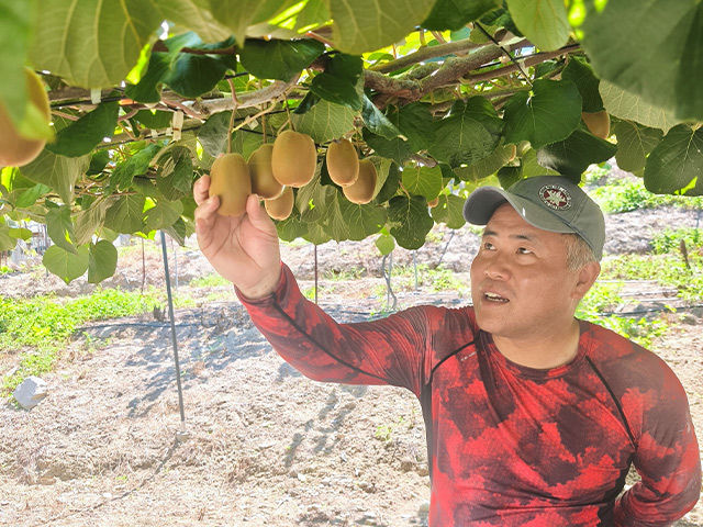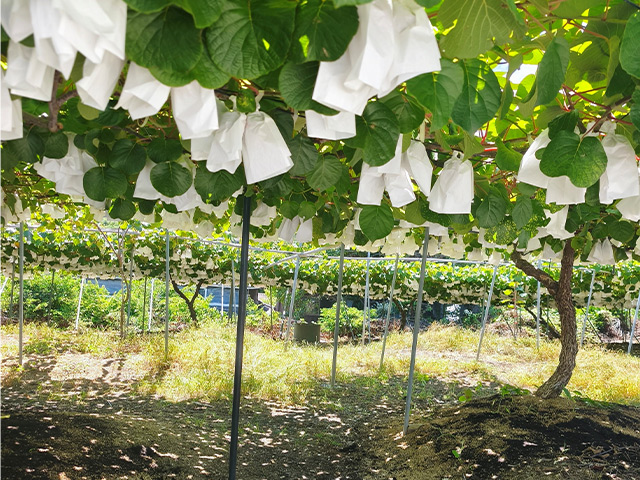 長く続く家族経営ですが、実は新たな品目や栽培方法を積極的に導入し、変化し続けてきました。 キウイは祖父が約30年前に始めましたが、ヘイワード→香緑・さぬきエンジェルスイート→さぬきゴールド・さぬきエメラルドと、土との相性や市況などに応じて新しい品種に改植。近年は猛暑による葉焼けや水切れを防ぐため、本来キウイに適さないと言われれてきたドリップ潅水に挑戦したり、枝を最大限活用して日光を遮ったりと、教科書どおりではないことにもあえて取り組んでいます。 自然相手の農業に困難はつきものです。稼ぎたいという気持ちを優先し過ぎると苦しくなります。まずは楽しむという価値観が経営継続の秘訣でしょう。