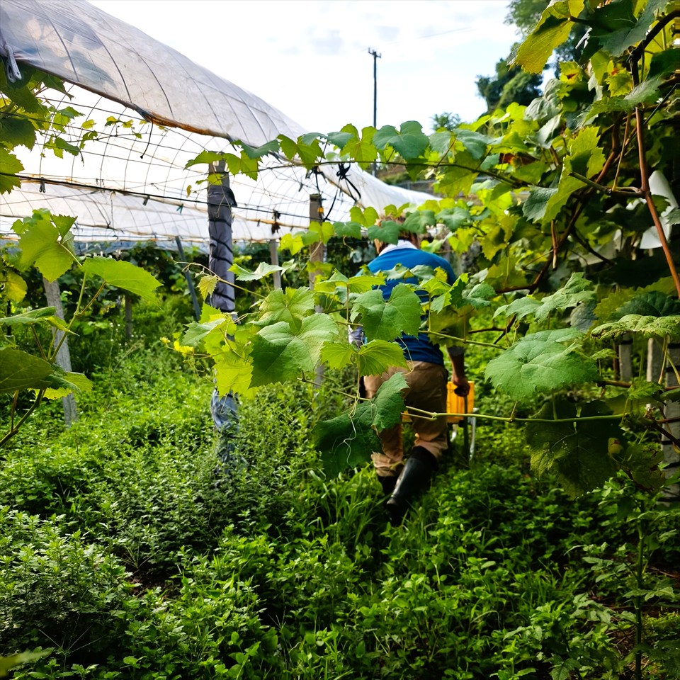 白井さんにぶどうへの思いを聞くと、「僕がぶどうを作っているのではなく、ぶどうの木がぶどうを作っている。僕はぶどうたちのマネージャーとしてぶどうの職場環境を整えて、よりよいものができるようにサポートしているだけ」と話していたのがとても印象的でした。今回の研修を通して、ぶどうづくりの技術だけでなく、農業に向き合う姿勢や地域との関わり方についても多くの学びがありました。白井さんの働きぶりは近年のワークライフバランスと真逆のスタイルですが、これがリアルな稼ぐ農業。白井さんのもとで厳しい研修をやりきればきっと自信を持って就農できるはずです。
